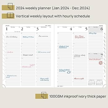 Source : www.amazon.comAmazon.: POPRUN 2024 Planner 2024 Weekly Calendar with