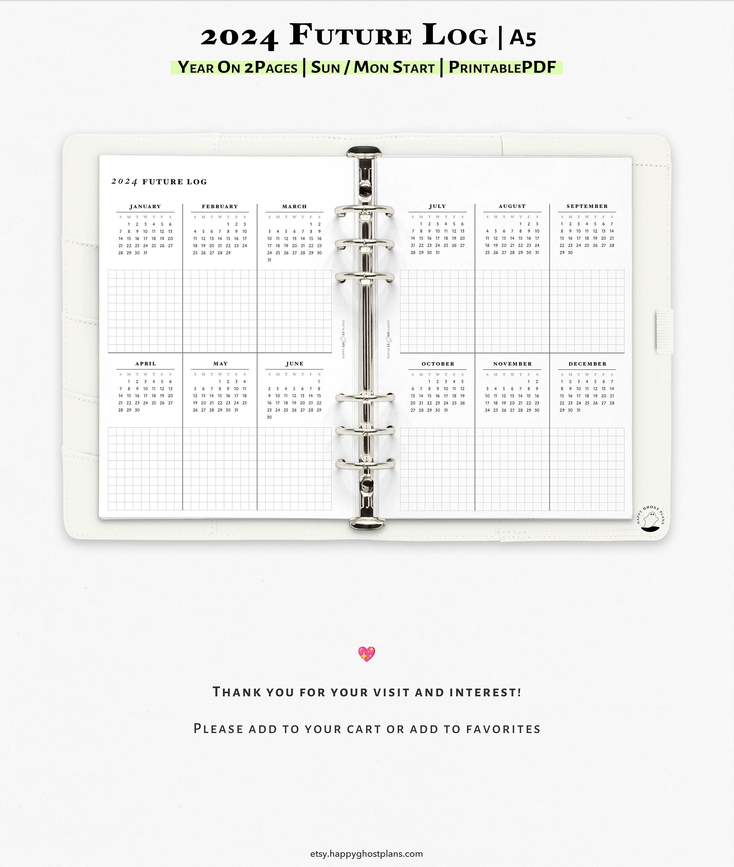 Source : www.amazon.com2024 Yearly Planner Printable A5 Planner Insert Future Log 2024