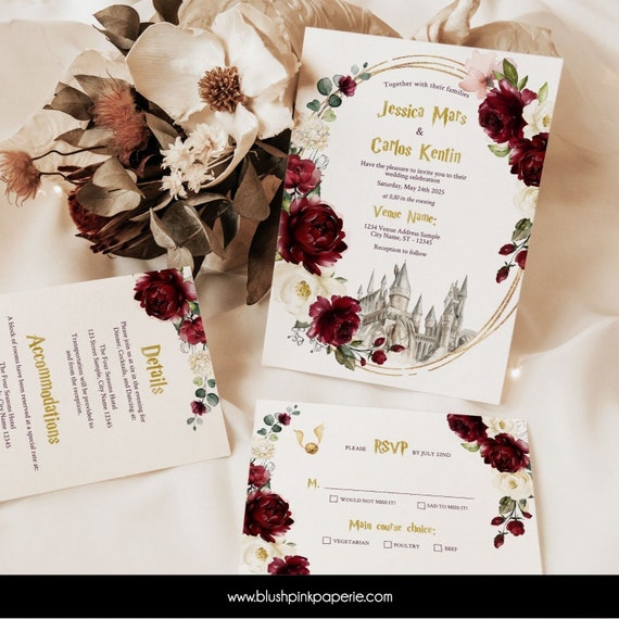 Source : www.facebook.comBurgundy Red Wedding Invitation Wizard Wedding Invites 3pcs Suite