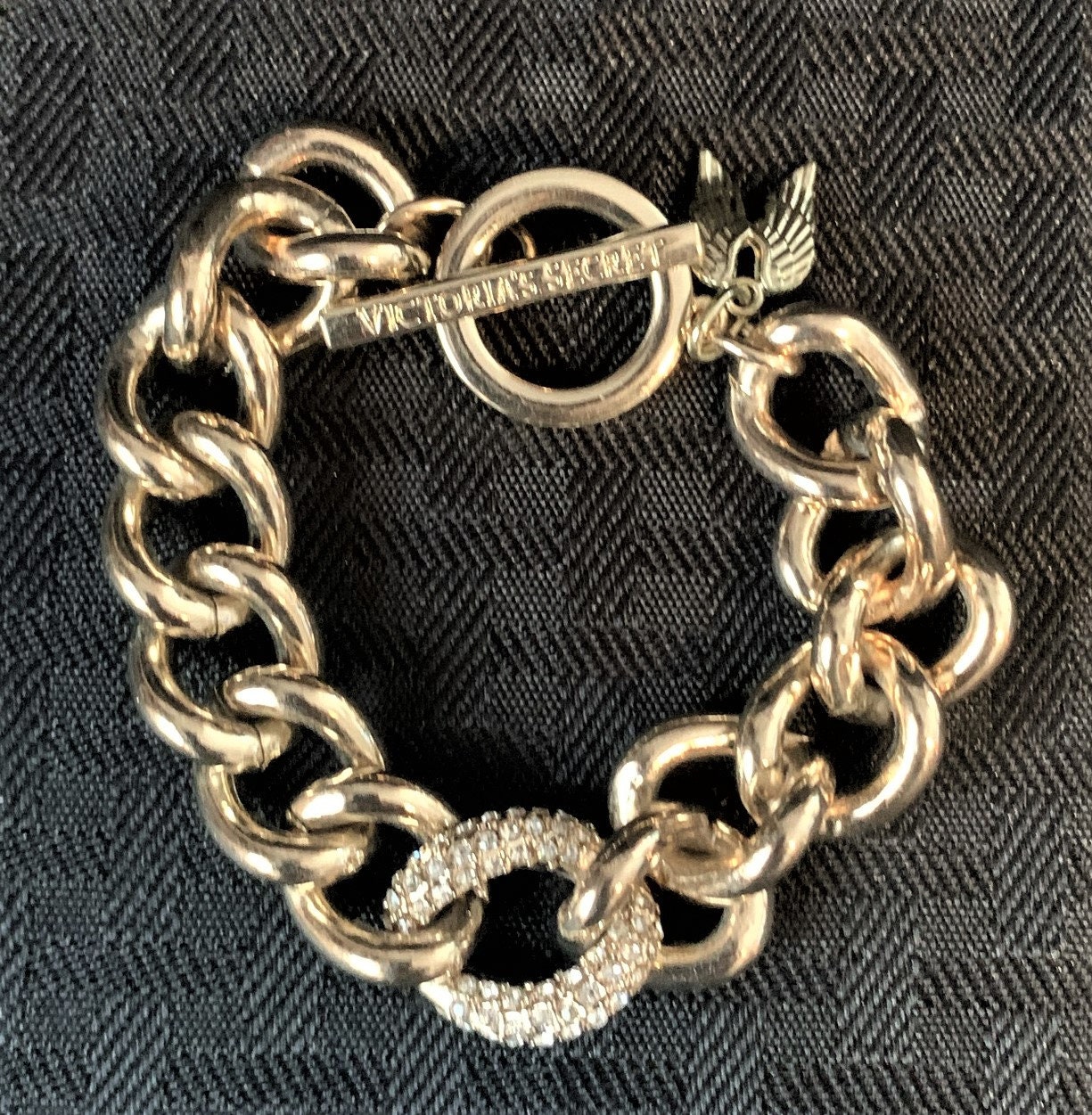 Source : www.amazon.comGold Tone Crystal Rhinestones Angel Wings Charm Link Bracelet